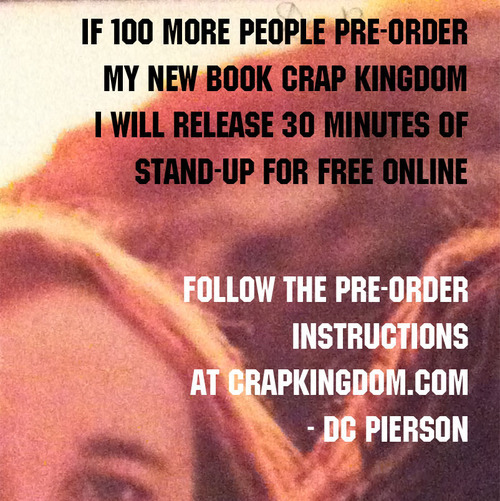 I said if 100 more people pre-ordered my book, I’d release 30 minutes of stand-up for free online. They did, so I did.