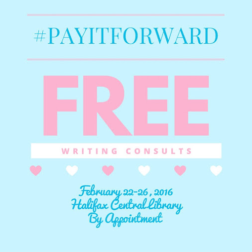 Whether you're an aspiring writer or already established, it's always nice to "talk shop" isn't it? In 2015 I camped out at Halifax Central Library for a week offering 30-minute chats as a way to #PayItForward to the writing community. I'm offering the same again in 2016 before I move out west.
