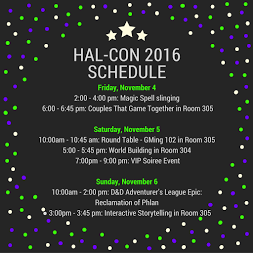 I'll be on a couple panels at HAL-CON: Sci-Fi / Fantasy / Comic Fan Festival with Chris Tulach who's a guest this year. Details for both our schedules below.���