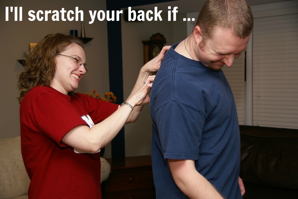 Sometimes, they'll resort to a form of psychological trickery. They'll scratch your back - even though you didn't have an itch and never asked for it - in order to put you in debt and wrangle some favor out of you in return.