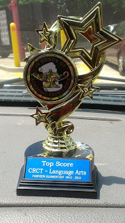 My son's award for scoring the highest grade on the Language Arts section of the CRCT in his school.