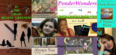 The wonderful visitors, followers, and readers. Thank you for all your continued support, whether you left a comment, read the post, or clicked and shared...thank you forever, from the bottom of my heart. Catalina Egan for hosting me at two of her blogs (4covert2overt & The Bridge of Deaths)!!! Shante Russ at It's Me Te`, (She had previously discussed with me having guest authors on her blog, and I was privileged to be the first guest author at her blog). Mayra Alonso at PonderWonders (I met two new readers there and had a party!!!!)Sarah Butland (took me all the way to Canada on her blog, Sara Butland)Chicki Brown (the greatest unofficial mentor ever) at Sister Scribbler & for guiding me on setting up my first tour.Mimi at Magical Mystical Mimi (she's been a phenomenal all around power house!)Zee Monodee at her blog (graciously took me on despite her crazy, hectic schedule...you will love the interview I do with her, next week).MJ at M. J. Kane (a new writer friend, that runs a fabulous writer workshop monthly here in the ATL). And of course although last on the list, but NEVER least, my wonderful husband and kids for loaning me out to the online world, for the encouragement, late nights, coffee breaks (for this non-coffee drinker), and loads of advice. I could never do any of it without them, and my Lord and Savior, Jesus Christ.