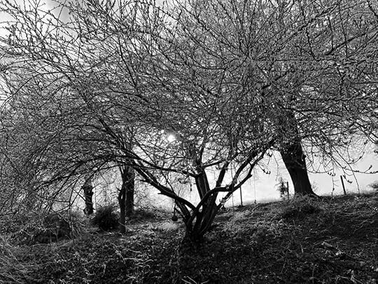 I know that we forgot green because the word still appears in dictionaries and books. I even know that it was often used to describe grass and trees and often counted as the opposite of red in indicators and children’s games. But not a one of us remembers what green looks like. I stand in the conservatory beneath the arching branches of the elder trees, gazing up at the old sun through leaves which tremble in the breeze, and I see the leaves and yet the color of their delicate veins and broad surfaces is indistinguishable to from that of the branches and trunks. It’s not grey. It’s not black and white.