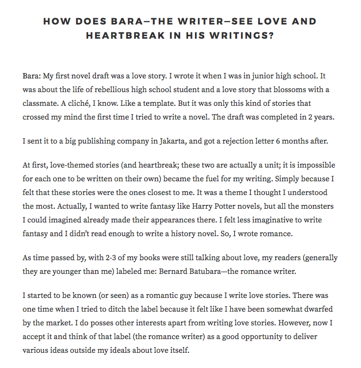 Bernard Batubara: On Stories, Love, and Heartbreaks (Interview)