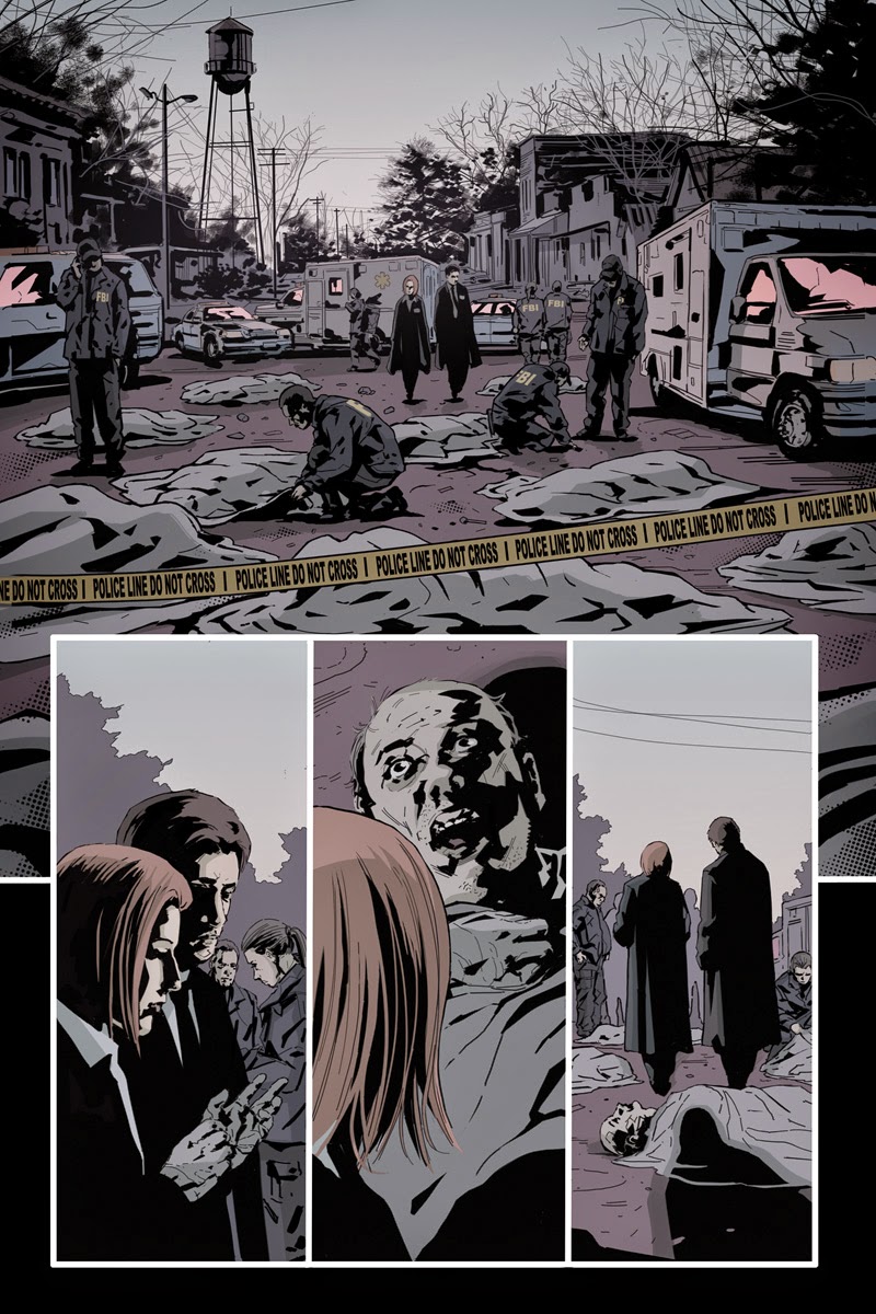 I'm really honoured to have been asked to contribute to Chris Carter's continued X Files mythos. Below you'll find a bunch of selected pages from the two-parter "Immaculate." The X files Volume 4 from IDW is released this Wednesday. Written by Joe Harris with colours by Joana Lafuente. Cover is by Francesco Francavilla. [image error]