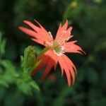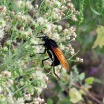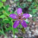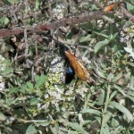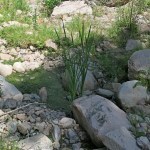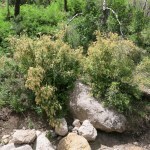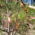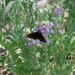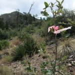 Despite the early start, air temperature was already in the 80s when I reached the 5,240 foot trailhead at 8:30 am. And despite our summer-long drought, and the fact that the creek started out bone-dry, I was soaked with sweat and swarmed by flies within the first mile. These northern canyons hold moisture – from our wet winter and a few rains in June – and unlike in our canyons back home, I found an impressive display of wildflowers and pollinators.