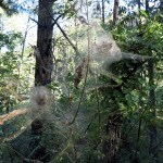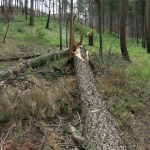I could find no trace of the old trail anywhere below the saddle or on the slopes below the ridge. The ridge itself bore stands of intact forest but the forested slopes consisted of the earthen mounds and pits left by the roots of fallen trees, so traversing them was like walking across moguls on a ski run. I kept studying the topo map I’d brought, trying to guess where I was, but it was fairly low resolution – I was never sure exactly where I was on the slope.