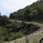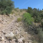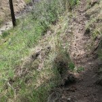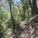 Panting with effort as the grade got steeper, I made it to the bottom of the switchbacks and found that the big tree across the trail there had indeed been cut. But that’s where the equestrians’ trail maintenance had ended.