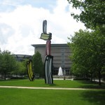 On my five-mile round-trip across downtown to the historic canal with its ducks and geese and the big river with its rim of flood debris, I was reminded that like the professional sports it’s crazy about, this is Sponsorship City. It seems that every public building, monument, sidewalk, stairway, wall, and overpass is permanently engraved with the names of rich white sponsors.