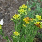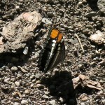 After I crossed over the peak and started down through the alpine meadows of the back side, through the burn scar of last year’s mega-wildfire, I began encountering the pollinators. They seemed to be loving this hot, still weather, they were swarming tiny, dull-looking flowers we’d normally ignore, and in the windless quiet the buzzing of the bees could be heard from far away.