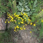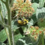I was okay with turning back at this point; even truncated, this would be my most challenging hike since the first week of May, with 14 miles round-trip and over 3,200 feet of elevation gain. And I was mesmerized by the swarm of bees on a shrubby, dull-green annual that surrounded me on this hillside stopping point.