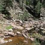 But the ranges over in Arizona would still be too hot, and as I studied my list, I realized the remaining local trails were either too exposed or spent most of their time at elevations where temps could still exceed 90. I was about to give up when, a half hour before departure time, I remembered the trail I’d tried to reach a few months ago, only to be turned back by a road flooded with snowmelt. Snowmelt! Those were the days.