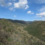 The canyons are generally too narrow to support roads, but a few of the east-west ridges are relatively flat on top – finger-like mesas – and dirt forest roads have been graded up these, occasionally all the way to the 10,000 foot crest. Hence most of the west side – the only side accessible to me – was left out of the wilderness area, and is still grazed by cattle.