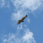 There’s always at least one hawk working this slope, and today there were three, along with many other birds closer to ground. But finally, I heard tires behind me, and scrambled to find a place to safely get off the trail on this steep slope.