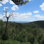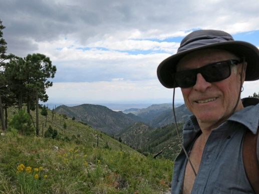 When I reached the pass at 8,200 feet, it was clear, sunny, still, and hot. The Rio Grande Valley to the east lay under heat haze. This is the old familiar trail that follows the crest to a 10,000 foot peak in 5-1/2 miles; I sweated during the long traverses and relished a light breeze when crossing saddles. Finally, after about three miles, I reached the relief of the shaded mixed-conifer forest.