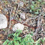 Normally, at this time of year, there would be thunderstorms with rain and hail and lots of wildflowers and fungi. In this drought I found only a few flowers and no fresh fungi. Buy the wildlife seemed to be thriving – in rapid succession I came upon an Arizona/Sonoran Mountain Kingsnake, a whitetail deer buck, a Downy Woodpecker, and a rattlesnake.