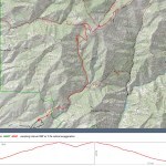 Checking the map at home, I found I’d made it to within a mile and a third of the 9,000 foot crest. Now I’m familiar with the route, if I start the day on time I can probably go all the way. But as I’ve found elsewhere, the route on the ground deviates significantly from routes, including GPS, shown in mapping databases. So there are no guarantees.