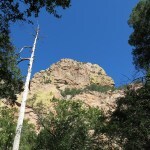 I expected to be cooler on the way down, but even the effort of descending kept me hot and sweaty. I’d allocated nine hours for the entire hike, and I thought that would leave me plenty of time, so I made plenty of stops, especially enjoying the sight of a couple of beautiful Englemann spruce trees, isolated here in one of their southernmost habitats.