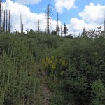 Here in this alpine burn scar where you could almost touch the clouds, wildflowers were lush and pollinators were working as hard as ever – I even saw hummingbirds.