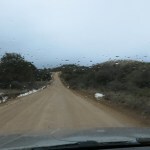 It was warmer in the morning – in the 40s – but I layered up with all my rain gear, and a light rain began as I headed off the paved highway toward the low mountains.