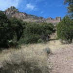 At this elevation, both catclaw acacia and honey mesquite grew together along the trail, and before long my skin, shirt, and pants all bore numerous scratches.