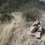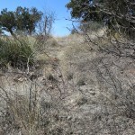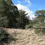 I’d left the cypress forest behind and was now dropping from open pinyon-juniper-oak woodland onto shallower grassy slopes dotted with shrubs. The narrow track got fainter and more overgrown, but I was reassured by the periodic appearance of long-established cairns.