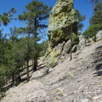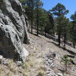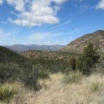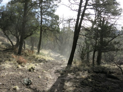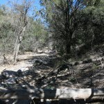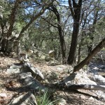 This would start like one of my regular midweek hikes – a route that’s one of my secrets, known to few others. I would take an unmaintained, high-clearance dirt forest road up a plateau mostly deforested by firewood cutters, leaving my vehicle in a little surviving stand of Emory oaks. From there I would walk up the deeply eroded road to where it dead-ends at the foot of a low peak, and from there I would take a short spur trail to where a seldom-used segment of the national trail skirts the base of the peak on its way north. I intended to follow the trail north for 7 or 8 miles.