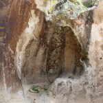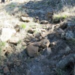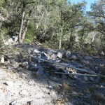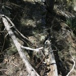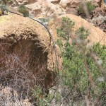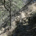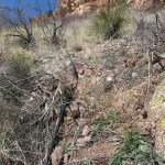 No corral – not even the hint of level ground on this high slope – but could this be the way to the pictograph site? I had no more time left – but shouldn’t I at least make an effort to find the water pipe descending from the bluffs?