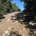 Reviewing the topo map one more time, I saw a trail up on the west side of the wilderness that I’d never noticed before. Starting at only 5,100 feet, it climbed to over 9,000 feet, eventually joining one of the crest trails, but it took it a while to get there, so even if I ended up blocked by knee-deep snow, I’d still get some decent mileage and elevation. I had no idea what the condition would be, but I found a note online saying part of it had been worked on last year, so I was optimistic.