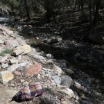 And at one creek crossing, I found a rolled-up blanket up on the bank. One of those cheap, lightweight, synthetic fleece things – I couldn’t imagine anyone actually backpacking with it in our 30-something nighttime temps. I assumed it had fallen off the backpack of one of those three recent hikers, and they hadn’t missed it until it was too late to go back. But it set the tone for the rest of the day.