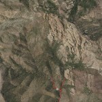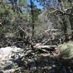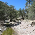 I was exhausted when I reached the side drainage – and there was no sign of smoke. I began to wonder if maybe the “smoke” I’d seen had actually been dust raised by the passage of a vehicle on the road, a mile farther away. In any event, I had no interest in retracing my steps after that desperate run downhill.