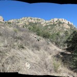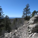 My stomach was still recovering, so I was not only weak and out of breath, I was actually feeling sick. But with well more than half my time gone, I reached the rock formation with a southwest view where I’d stopped on my first attempt at this trail, 4-1/2 years ago.
