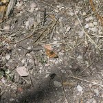 As I stood watching, the smoke moved off and dispersed. I followed the trail around the head of the drainage and came to a junction where a branch trail went down toward the river. I saw another cloud of smoke drifting just below the canopy. Damn! This is the dry, windy season when most of our wildfires start – had I avoided a flood only to be turned back by a forest fire?