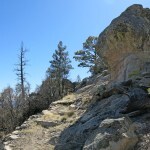 Despite the excruciating pain, this had been a beautiful day and a pretty nice trail. I wish it had better views of the crest to the east – all I had was narrow glimpses through surviving stands of conifers. But the west flanks had been cleared in past wildfires, and were so steep that the traverses were impressively dizzying.