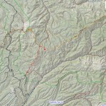 My left knee began hurting on the descent, which was otherwise much easier on the rest of me – even climbing over all that blowdown in the canyon bottom. But the day had been just as discouraging as so many hikes in the past year. The equestrian trail crew the Forest Service has authorized to do trail work is not equipped to cut these big-diameter trees, and it may take USFS years to get funding for their own effort. And if there was a blowdown here, there were likely blowdowns elsewhere. Three of the five other wilderness trails on the west side were already blocked by flood damage – now there’s only one left, and it doesn’t access the crest. So the crest is now only accessible to a very tiny minority who are even more hardcore than me, willing to accept an experience which is more obstacle course than trail.