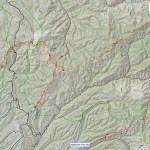 In the broad drainage before the final climb, another old two-track takes off north. I assumed it led to abandoned mine works. But checking the map again that night, I saw that it has its own Forest Service trail name and number – the Crystal Cave trail. It’s only a tenth of a mile long. But I couldn’t find any information on it online. More intrigue.