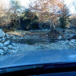 Before long I came upon a flock of 7 wild turkeys. And a little farther, a boulder I figured would stop even the biggest truck. But no, some macho dude had made it over that, all the way to the next creek crossing, where there’s a graded turnaround, since no vehicle on earth can cross at that point now.