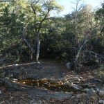The printout I’d brought said I would reach the “narrows”, where the creek flowed over bedrock, and over a mile past that, the turnoff to the Indian Cave. But walking was so difficult with my back pain and the lack of a clear trail, I totally lost track of distance. I came to places where the creek flowed over bedrock, and it was beautiful clear water and interesting rock, but I wouldn’t call it a “narrows”.
