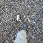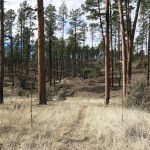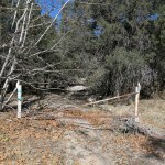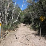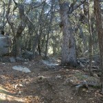 The only tracks I found in occasional patches of dirt were from the wild turkeys. There was no evidence humans had been here in years – maybe not since the trail guide guy had partially surveyed it right after the 2011 fire.