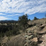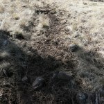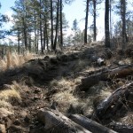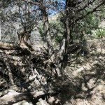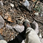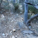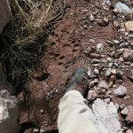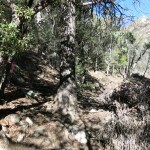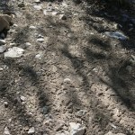 One thing I noticed on the way up, but puzzled over on the way down – the soil of the trail in the tributary canyon bottom was “turned” as if with a plow – like walking in mashed potatoes – with frequent deep holes like large hoof prints, but at random, without any identifiable pattern. It was another thing that slowed me down, and I still couldn’t figure out what caused it.