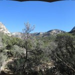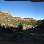 My tentative plan was to go west along the rim, hoping for a view of the canyon from above. The problem with canyon trails here is that you’re mostly buried under the riparian canopy and can’t see the spectacular cliffs and rock formations above you.