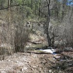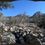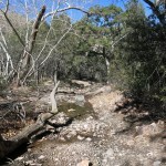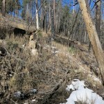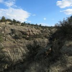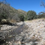 Many small trees along the bank had been bent all the way over by floods in last summer’s monsoon, and many larger trees had dropped branches recently, maybe during winter winds. I’m always looking for remote places where I will be the first visitor in ages, and I sure found one here! What a beautiful canyon, developed by the ignorant hubris of humans, only to be completely abandoned!