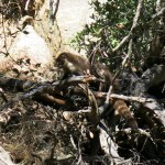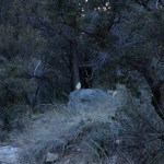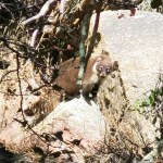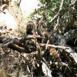 And in the canyon bottom, I encountered what I assume was the same troop of coatis. This time I could see at least one was a juvenile, and while the others hid, the biggest adult perched on a boulder above and chuffed at me for a while.