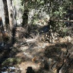 Going down those switchbacks was so much easier! I’d achieved my goal of reaching the crest, and despite all the obstacles, I decided the condition of this trail is just right for me, as is. Enough ambiguity, deadfall and overgrowth to make it a challenge without making it a bummer. Yes, I benefited from a few pink ribbons, for which I’m grateful – but they could’ve been put up any time in the past couple of decades. Wild animals are now keeping it open and maintaining tread – no human workers needed.