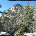 I did reach a spectacular waterfall, but was left with a powerful yearning to come back some day and find a less maddening route all the way up this canyon to the crest of the range. It would be a route that’s unique in taking you from high desert, through Southwest riparian habitat, to alpine fir forest at 9,000′, with massive rock formations and views across the landscape on your way.