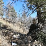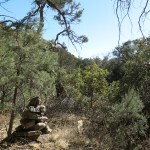 Unfortunately, that seemed to be the end. I’d expected to continue up this ridge about another mile, to the crest road, but the trail ended abruptly at a distinctive cairn, with nothing ahead but a maze of deadfall across a steep, overgrown slope.