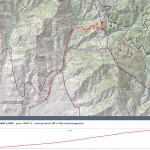 For my part, I got back with plenty of time. And at home, plotting my route on Caltopo, I discovered that with all the stops and sidetracks, I’d gone almost 10 miles in 5 hours – not too shabby for a hastily-conceived reconnaissance with lots of stops. It was now clear that to get a proper view of that rugged canyon, I’d have to approach it from the north, and that would not be a day trip.
