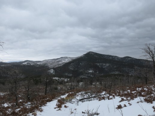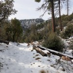 I’m on a little road trip to this Arizona mountain range, for better access to trails that are just too far for a day’s drive. But it’s winter, we’ve had our first couple of regional snowstorms, and as usual I was targeting high-elevation trails. The crest of this range lies above 9,000′, topping out over 10,700′. I expected at least a foot of snow on the crest, but with little previous opportunity to test my winter boots and gaiters, I wasn’t sure how the snow would affect my hikes.