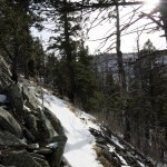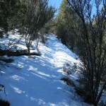 That morning, I reconsidered my options on the north side. I couldn’t find any online trip reports for my first choice – the only info I could find was a reliable source saying the trail was long abandoned and likely impassable. Without snow, I’d be interested in trying it anyway – it climbed a canyon which was reported to be spectacular, very rocky with many waterfalls. But I couldn’t see myself routefinding, bushwhacking, and fighting my way past hundreds of obstacles in deep snow.
