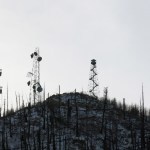 Of the remaining options, I ended up aiming for the “National Recreation Trail”, the most famous trail in the range, which starts in the northside canyon, just outside of town, where a terrifying, vertiginous paved road climbs all the way to the crest. The trail starts at a campground just below 6,700′ and switchbacks to a 9,400′ saddle, where it drops steeply towards one of the mountaintop campgrounds which are inaccessible in winter. Depending on my progress in the snow, I planned to turn off at the saddle and take a spur trail nearly a mile farther, to a 10,000′ peak bristling with communications towers and a fire lookout. I normally despise man-made structures on peaks, but at this point it seemed my best opportunity to reach that elevation, for one of the most spectacular views in the range.